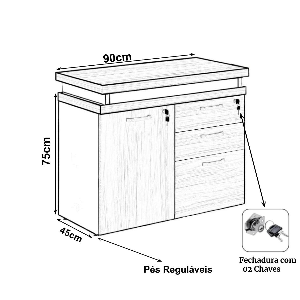 Armário Baixo 03 Gavetas e Porta (MISTO) MARSALA/PRETO – 51007