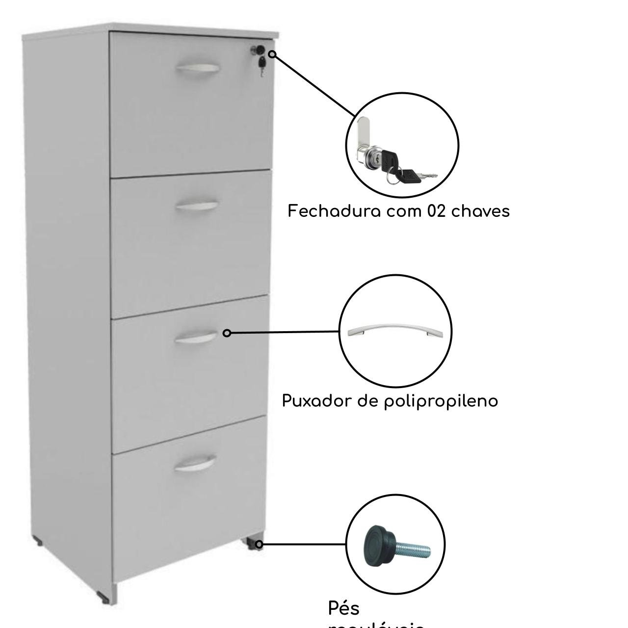 Arquivo 04 Gavetas Pasta Suspensa – 1,32×0,46×0,42m CINZA/CINZA – 21211