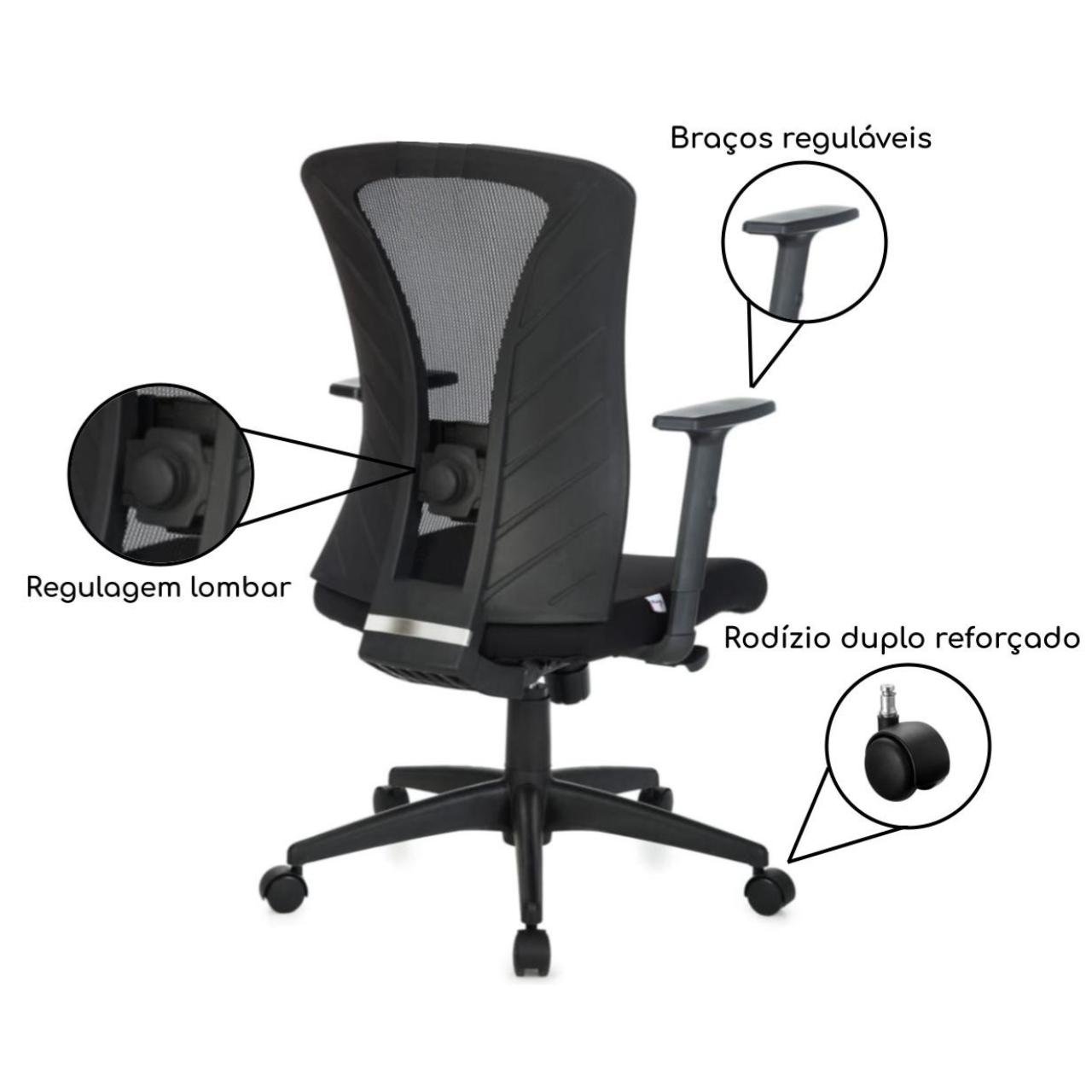 Outros Recursos / Mais informações: Base Syncron / Regulagem na lombar / Atende a norma NR17 (100% Ergonômica)