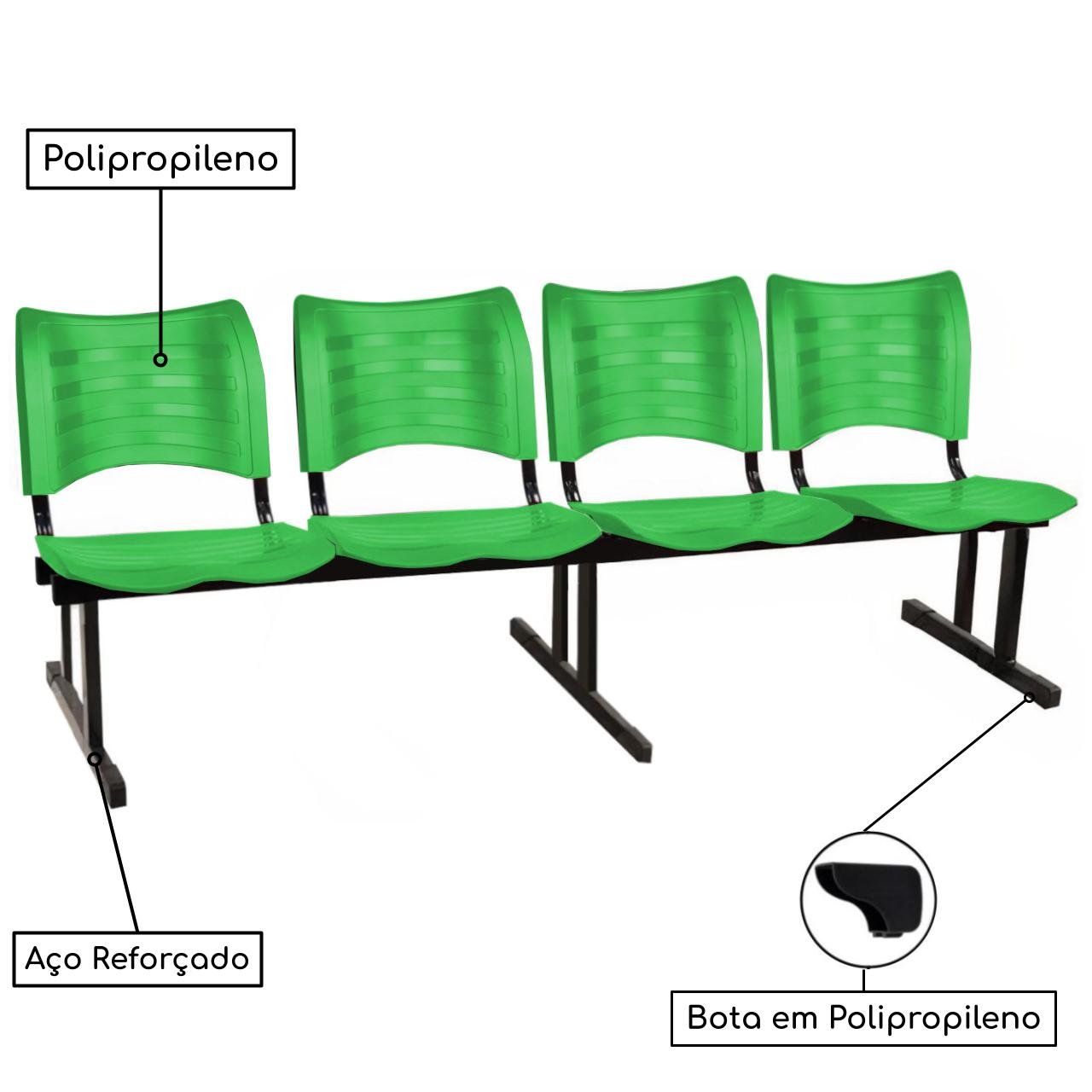 Cadeira Longarina Plástica 04 Lugares – Cor Verde – PMD – 34197