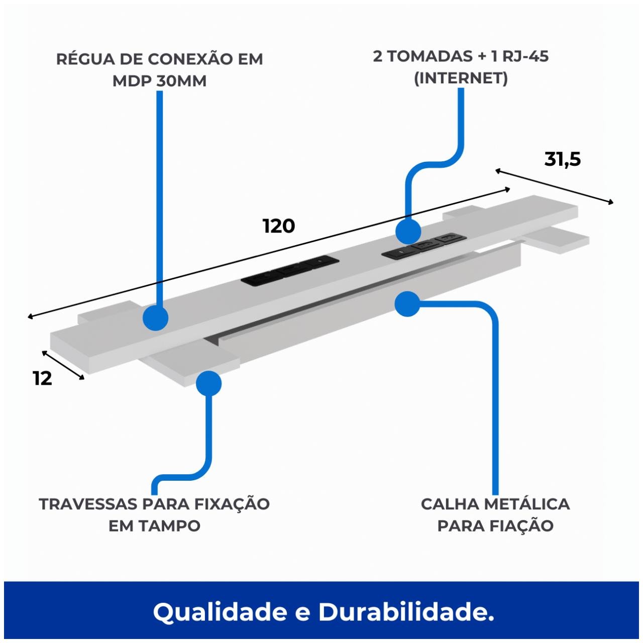 Material: MDP de 40 mm de espessura (alta resistência e durabilidade)