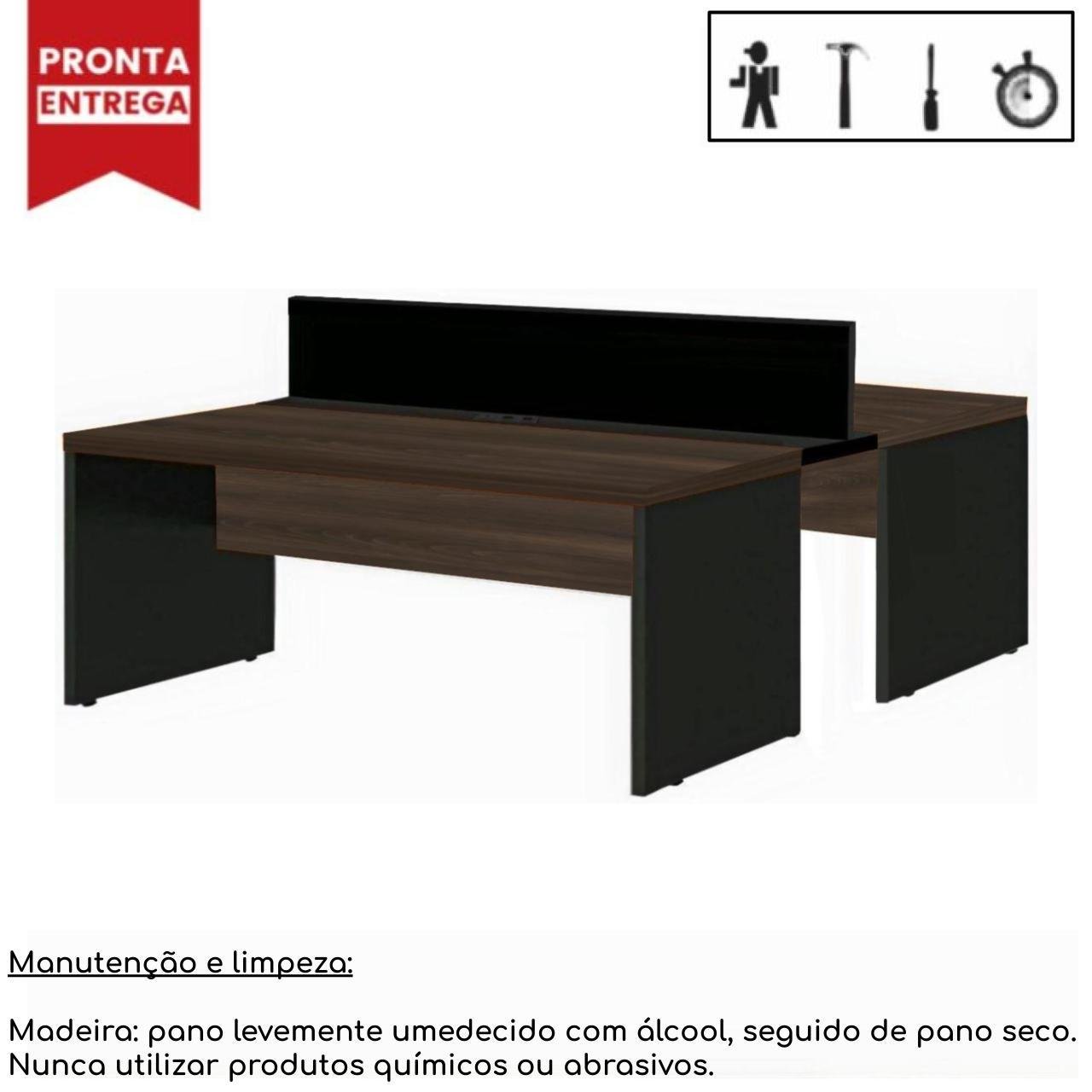 Estação de Trabalho Dupla 1,50×1,35m 02 Lugares s/ Gavetas c/ ponto de tomada MARSALA/PRETO – 63091