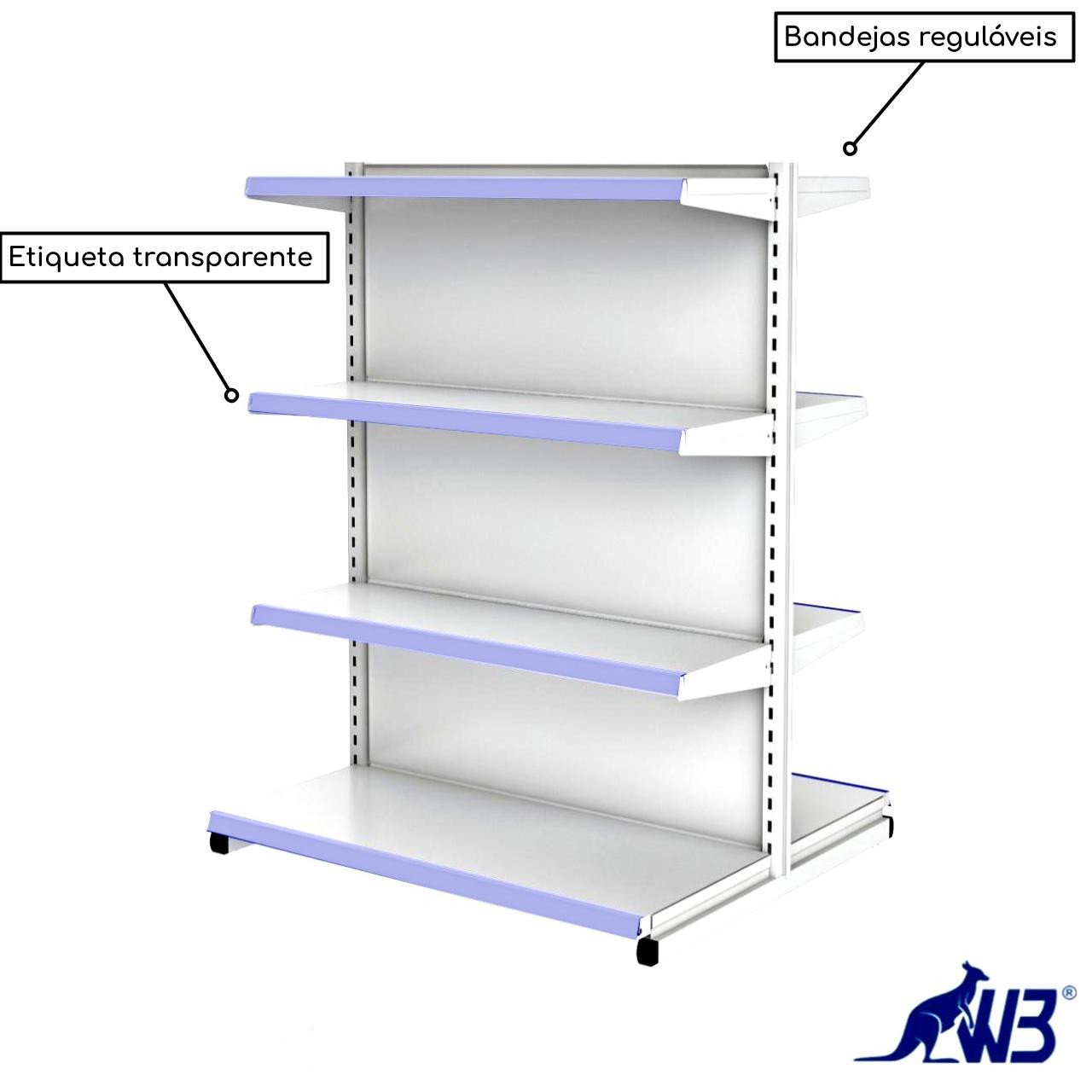 Mais informações: Gôndola Inicial, Porta Etiqueta Transparente, Pintura eletrostática, Bandejas reguláveis, Pés níveladores de altura