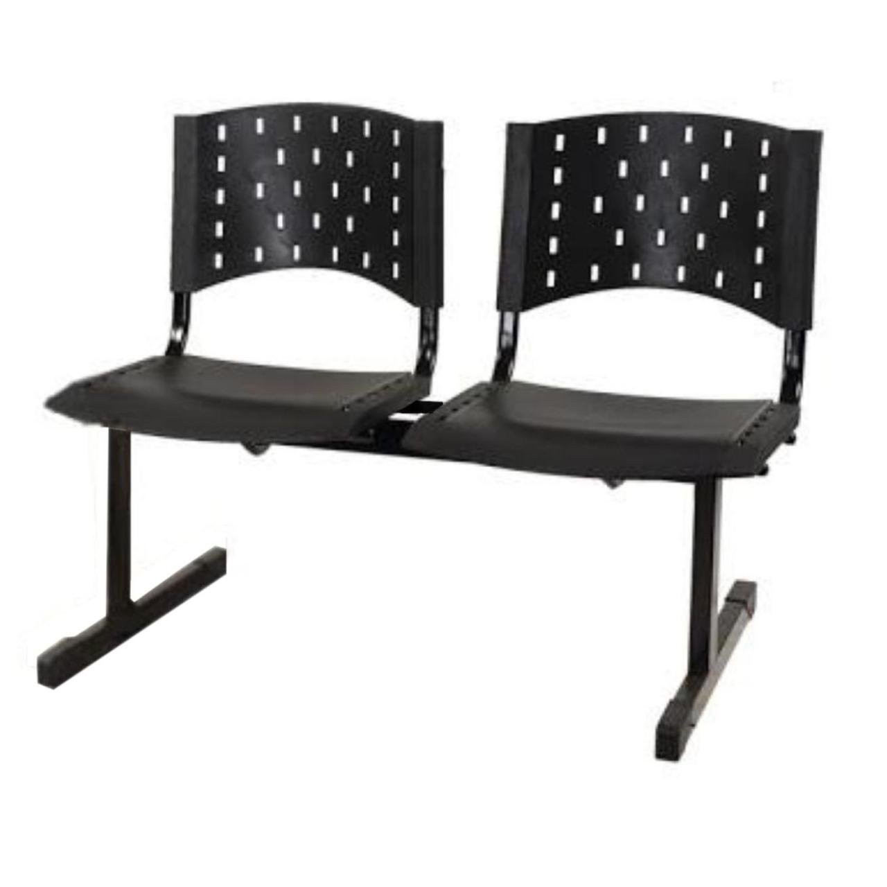 Kit 06 Cadeiras Longarinas PLÁSTICAS 02 Lugares – Cor PRETA – REALPLAST – 23022