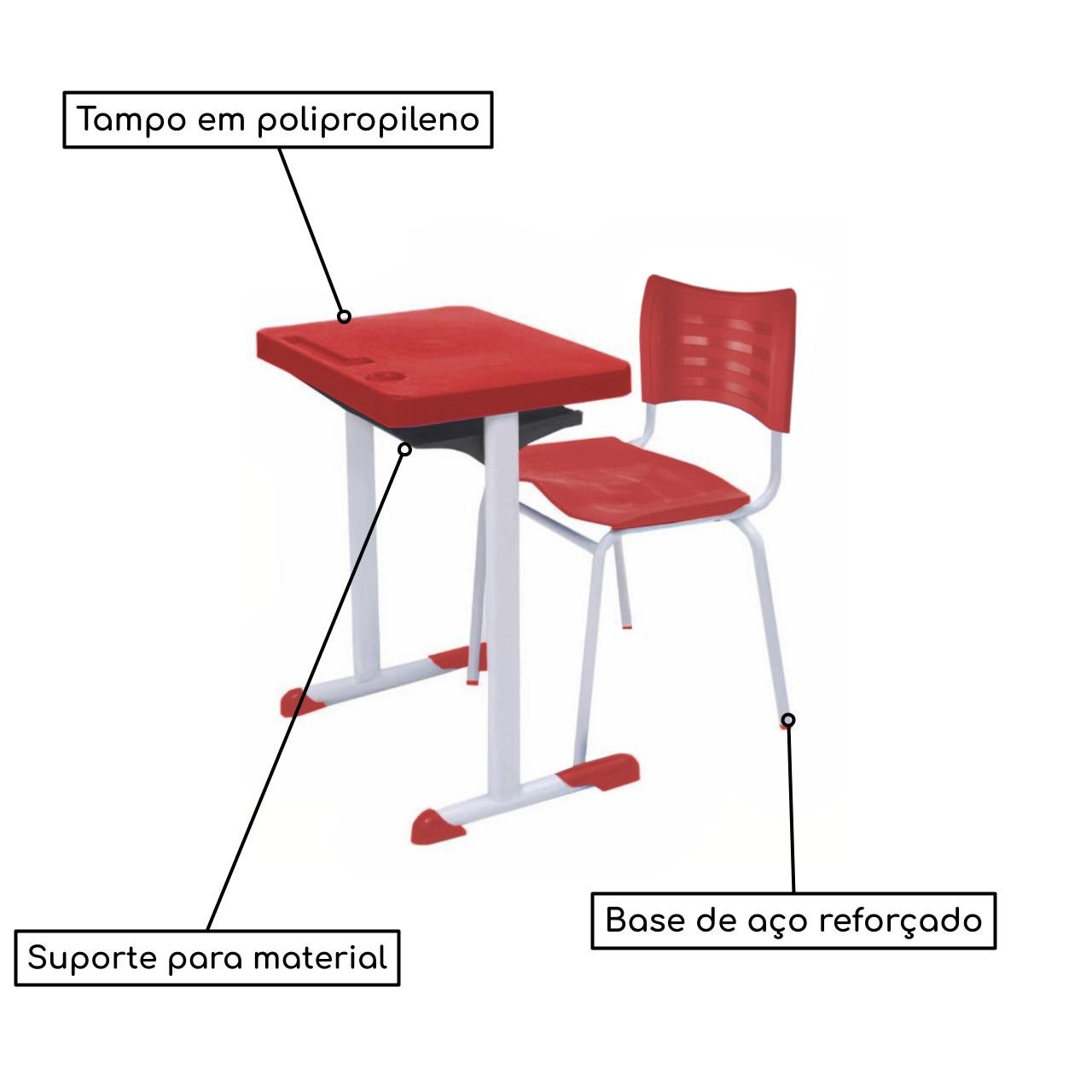 Kit Escolar Individual VERMELHO – (Mesa e Cadeira) – ADULTO – – COR VERMELHO – 40081