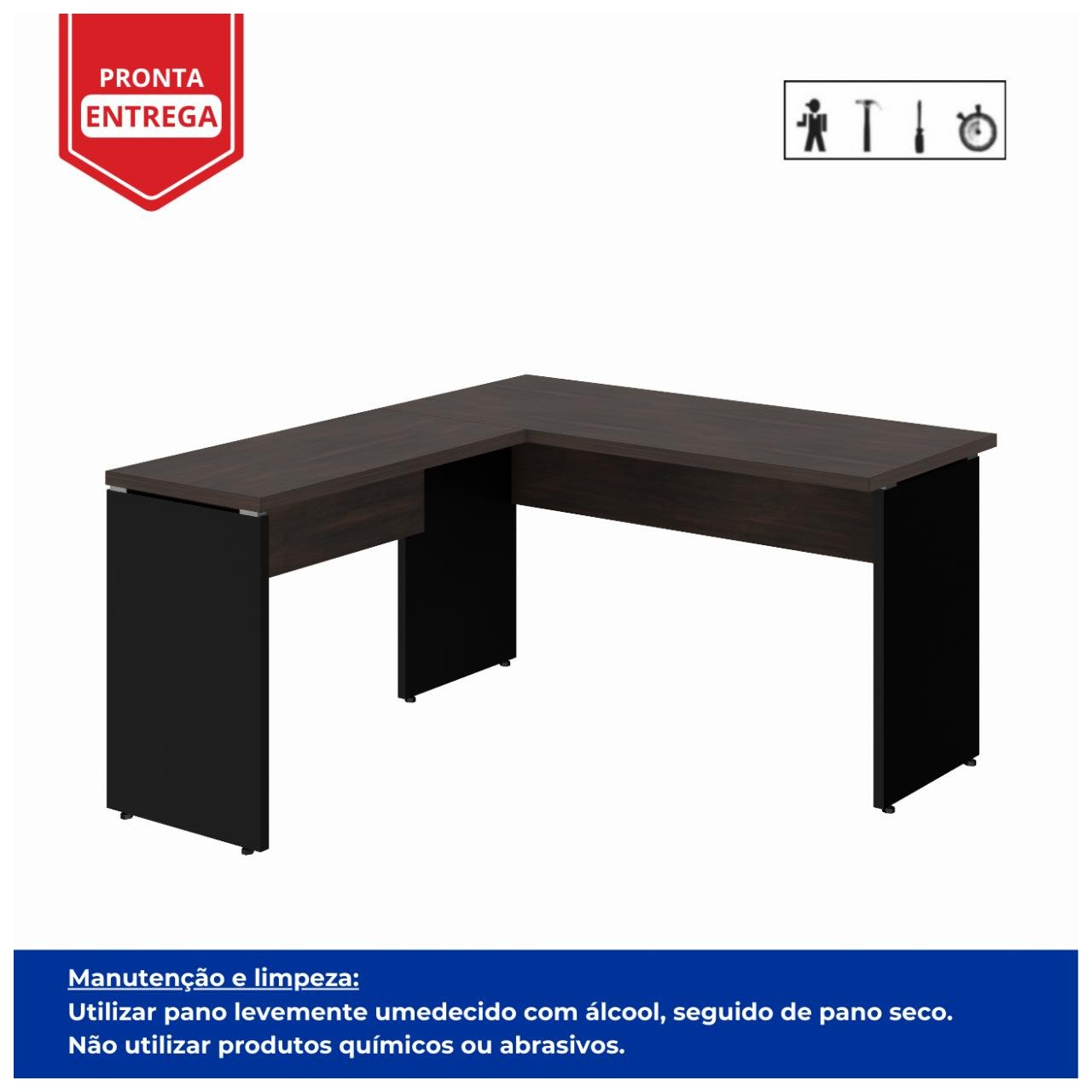 Mesa em L (Mesa 1,35m + Mesa Auxiliar) – S/ Gavetas MARSALA/PRETO – 25422
