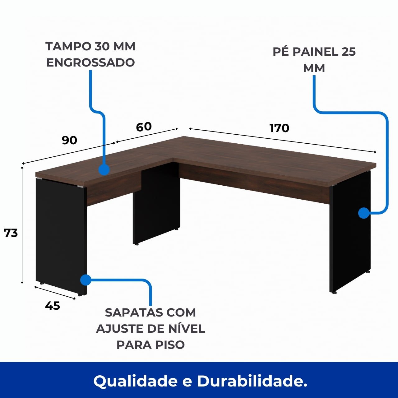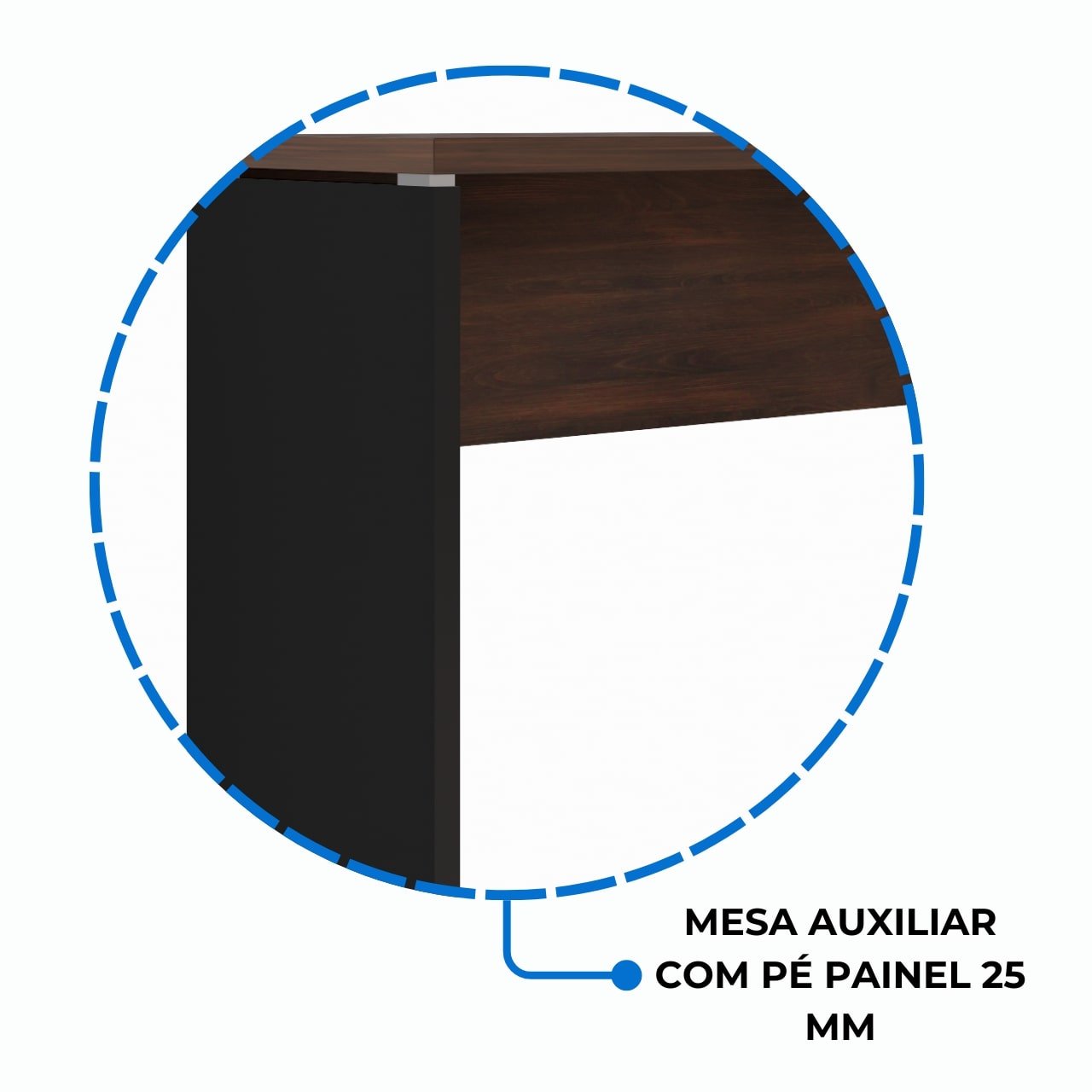 Mesa em “L” (Mesa 1,70m + Mesa Auxiliar) – S/ Gavetas Marsala / Preto – 23478