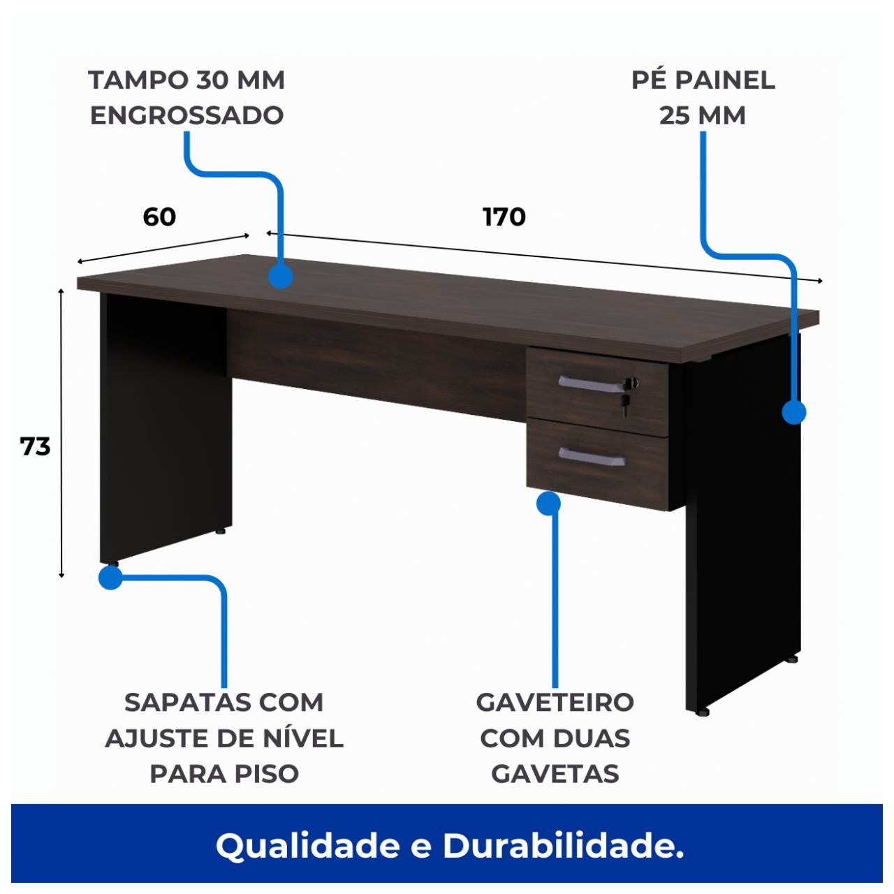 Conteúdo da Embalagem: Mesa 1,70 x 0,60m
