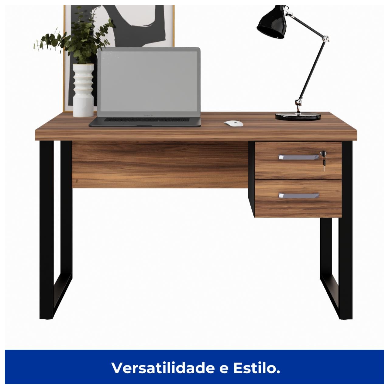 Mesa Escritório PÉ QUADRO - 1,20x0,60m - C/ Gavetas - NOGAL SEVILHA/PRETO - 24471