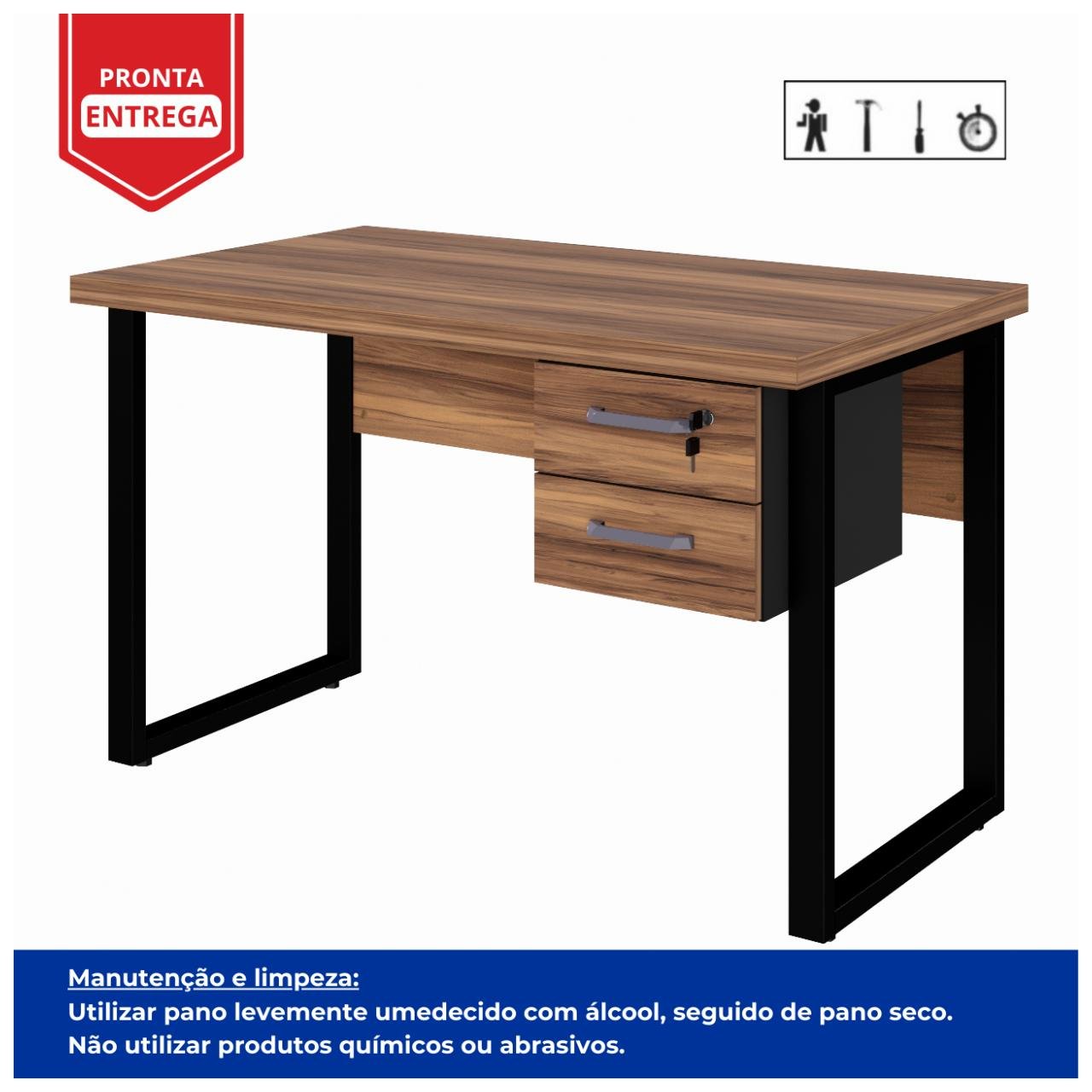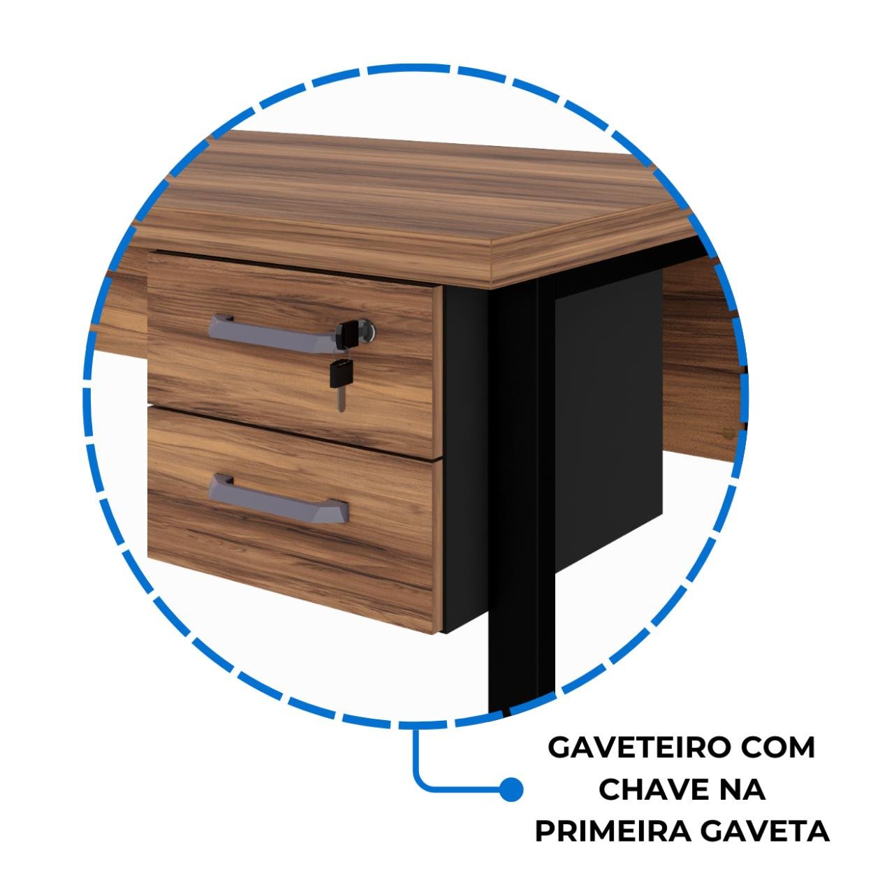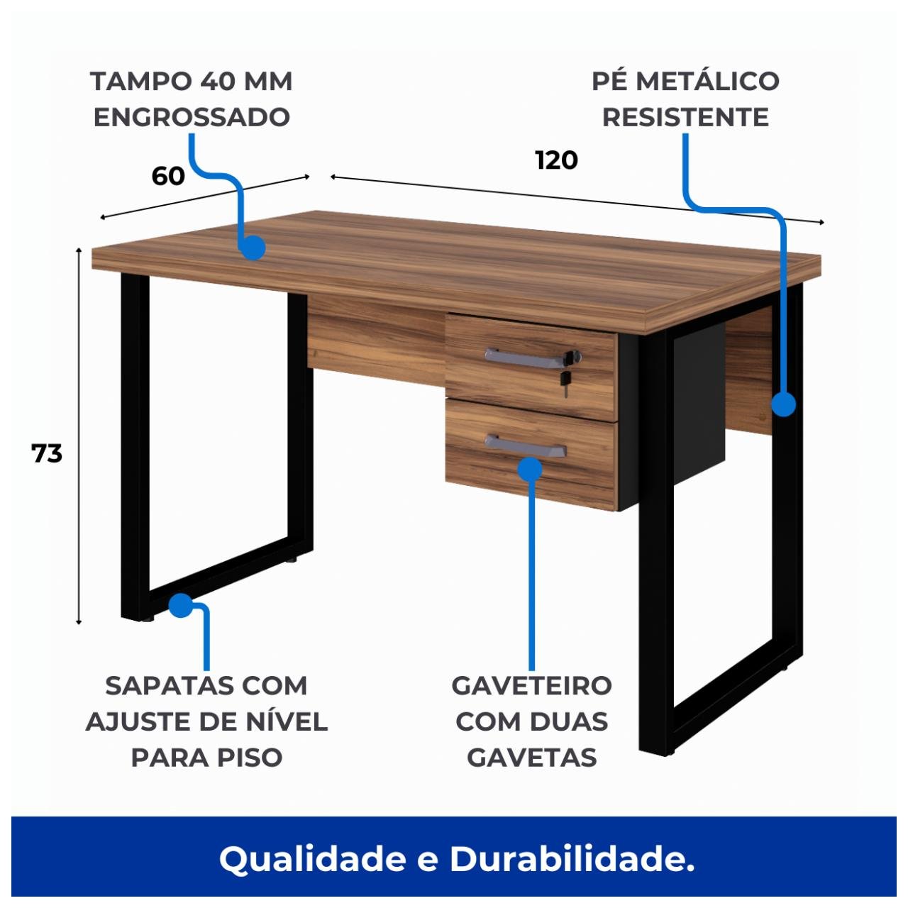 Produto: Mesa Escritório PÉ QUADRO – 1,20×0,60m – C/ Gavetas – NOGAL SEVILHA/PRETO – 24471