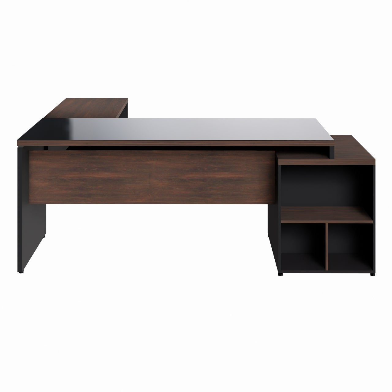 Mesa PEDESTAL VIDRO FUMÊ com MESA AUXILIAR – 1,92×1,60m MARSALA / PRETO – 23486